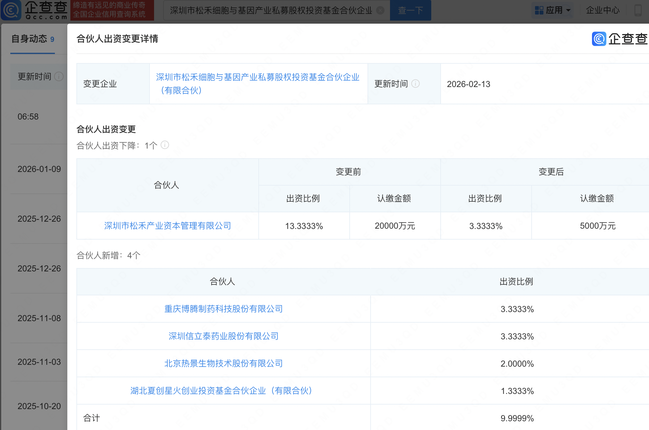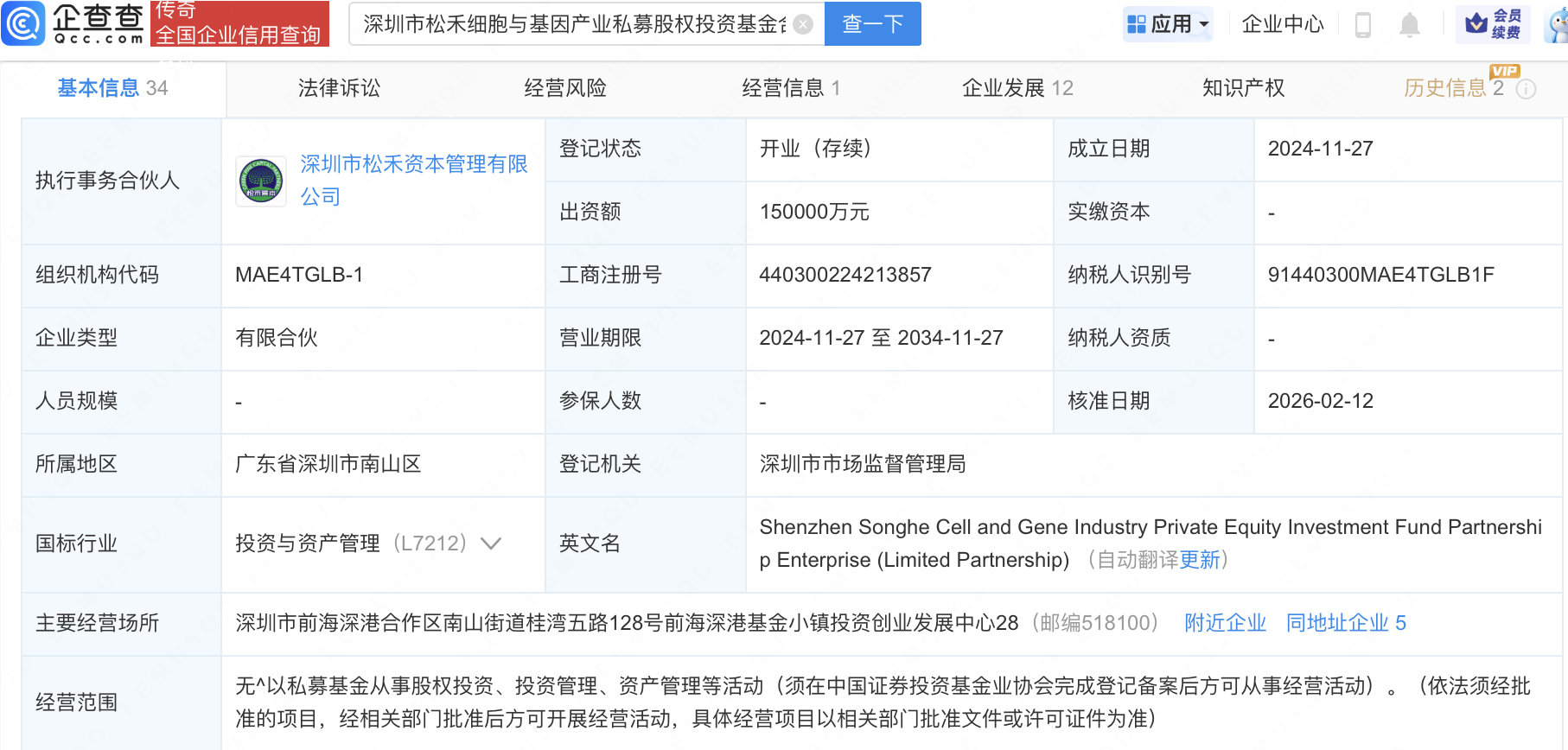 近日,深圳市松禾细胞与基因产业私募股权投资基金合伙企业(有限合伙)发生工商变更,新增博腾股份(300363)、信立泰(002294)、热景生物(688068)等为合伙人。企查查信息显示,该企业成立于2024年,出资额15亿元,经营范围包含:以私募基金从事股权投资、投资管理、资产管理等活动。